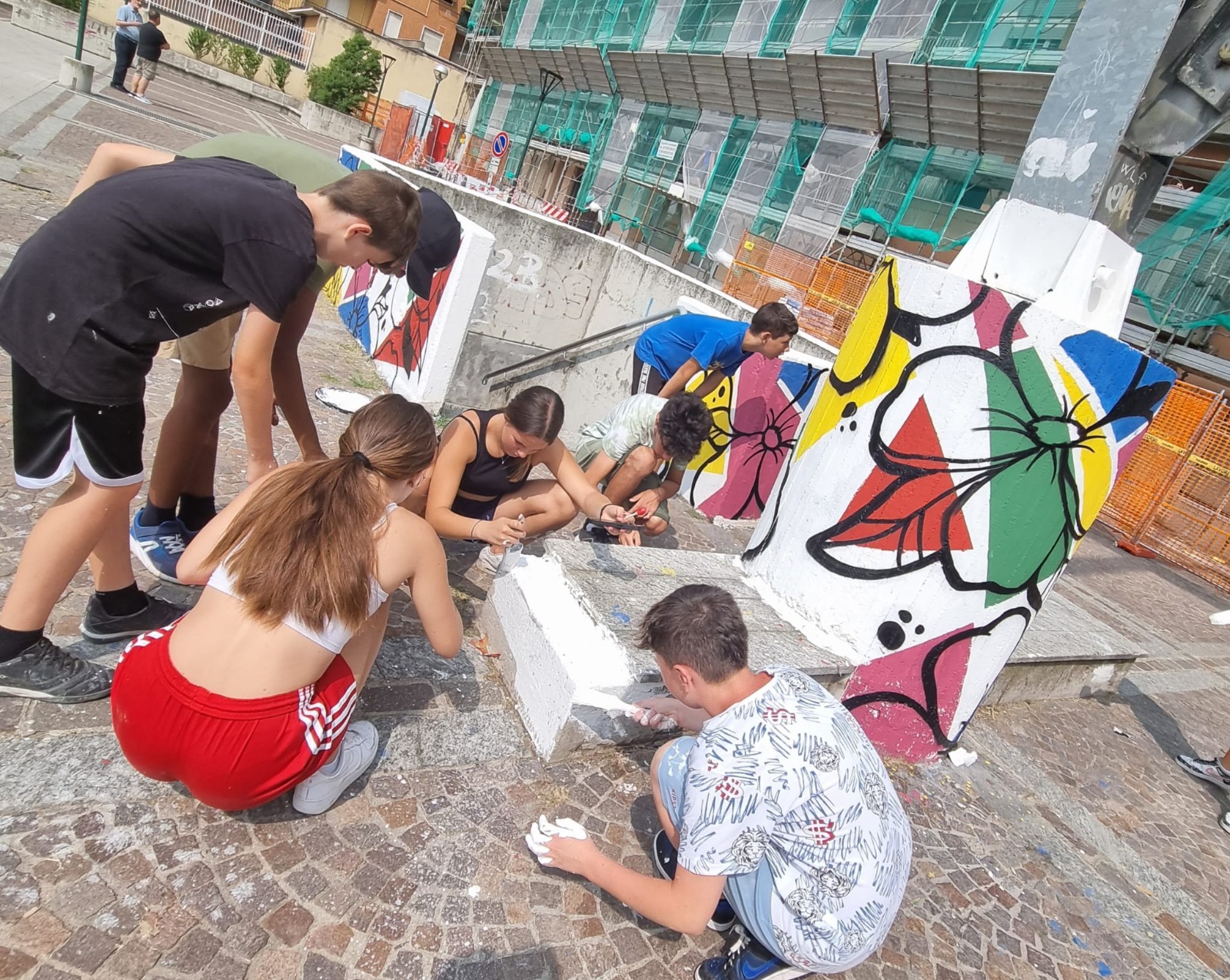 Fino a ora, sono state accettate tutte le numerose richieste di iscrizione giunte, accogliendo 1.279 tra bambini e ragazzi, 200 in più rispetto all’anno scorso. Con i primi, tra le varie attività quotidiane, è stata programmata anche la realizzazione di cartelli sul tema rifiuti, per sensibilizzare gli adulti a mantenere la città più pulita. Con gli adolescenti, invece, si è pensato di realizzare un murale in piazza Primo Maggio, su muri spesso imbrattati da graffiti senza senso. Con il supporto di Marco Zanghi, writer professionista, hanno creato il murale dal titolo “IL FIORE CHE CRESCE NEL CEMENTO”, che ha come oggetto dei fiori “dente di leone”, perché forti e capaci di sbocciare anche in posti difficili. Metafora dell’opera: nonostante il luogo in cui si nasce, chiunque può esprimere risorse impensabili e fare cose bellissime.