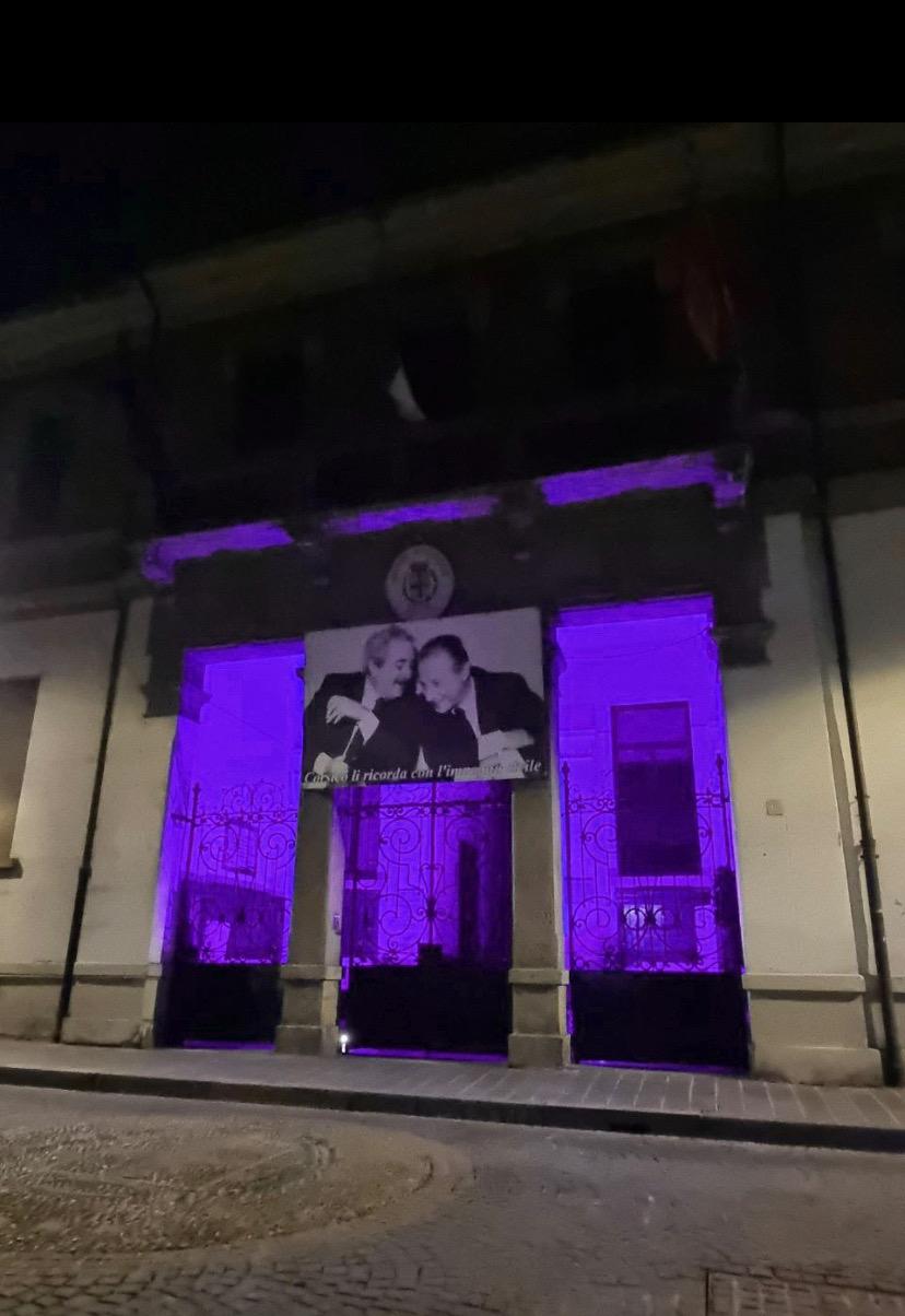 Il palazzo comunale è stato illuminato con fasci viola in occasione della “Giornata mondiale della fibromialgia”, per sensibilizzare su una patologia dolorosa che in Italia affligge 2-3 milioni di persone