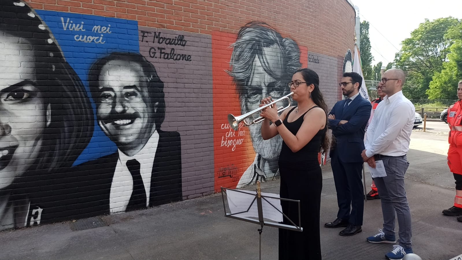 Si allegano alcune foto dell’inaugurazione del murale “Le cure” dedicato ai magistrati Francesca Morvillo e Giovanni Falcone e dell’evento organizzato al Falcone-Righi.