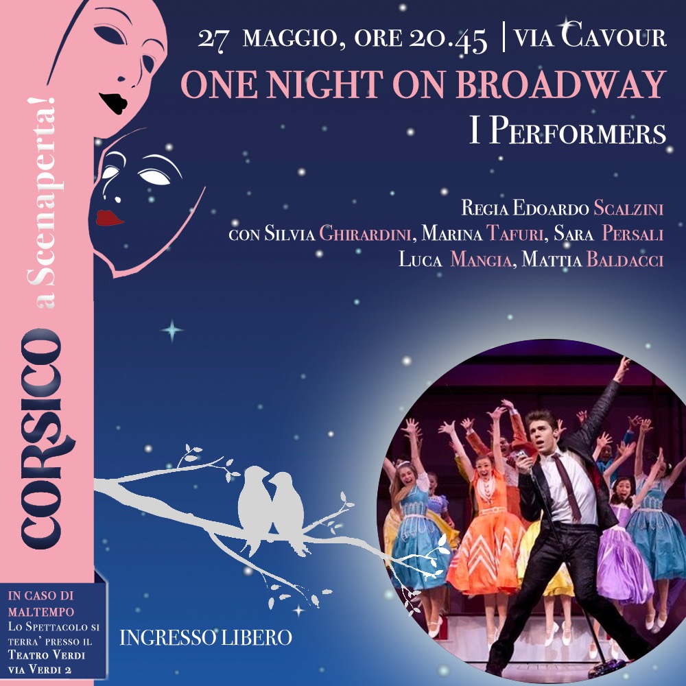 Sabato 27 maggio, alle ore 20.45, in via Cavour verrà rappresentato “One night on Broadway”, riduzione dei due musical “Romeo & Giulietta” e “Bye bye Birdie”